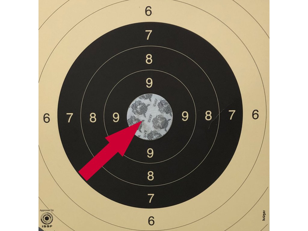 Terč dosiahne optimálnu kalibračnú teplotu 38 ° C v priebehu niekoľkých minút. Už len namierite termovíziou a nastreľujte. Po 2 - 3 testovacích výstreloch možno vďaka guľatému tvaru a malému priemeru podložky optimálne určiť nežiaduce odchýlky výstrelu medzi otvormi po guľkách a geometrickým stredom podložky.
