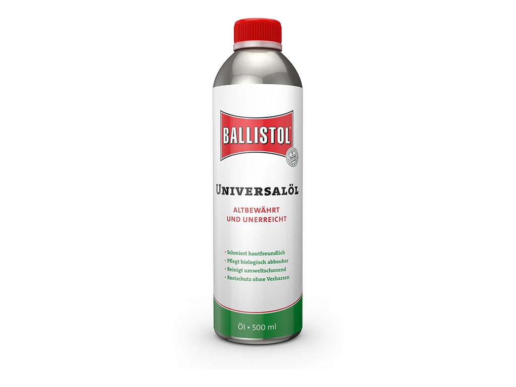 Univerzálny olej Ballistol čistí, chráni a konzervuje všetky typy zbraní. Rozpúšťa usadeniny olova, medi a červenej mosadzi. Olej neutralizuje usadeniny kyslých splodín. Chráni pred hrdzou, maže, čistí a odstraňuje zvyšky strelného prachu, olova, medených usadenín a zvyškov tombaku. Udržiava a konzervuje kovové povrchy, drevené pažby, kožené časti a plasty. Neutralizuje pot rúk, mechanické časti zostávajú hladko pohyblivé. Preniká do najmenších trhlín a rozpúšťa staré nečistoty a živice z nevhodných olejov.