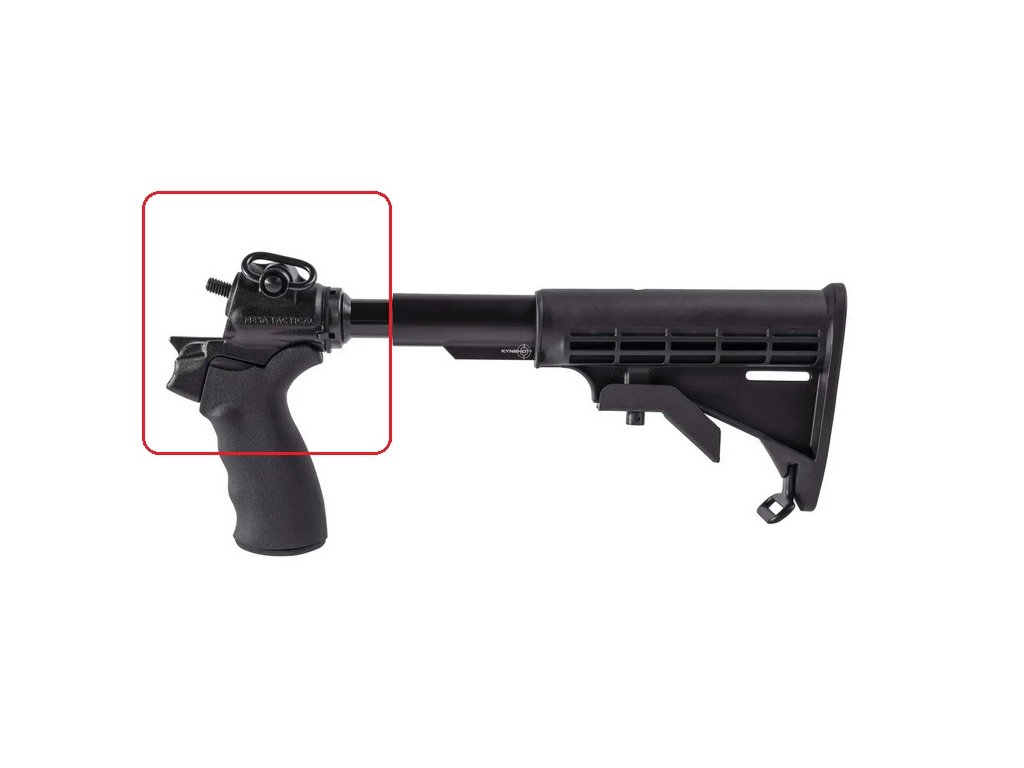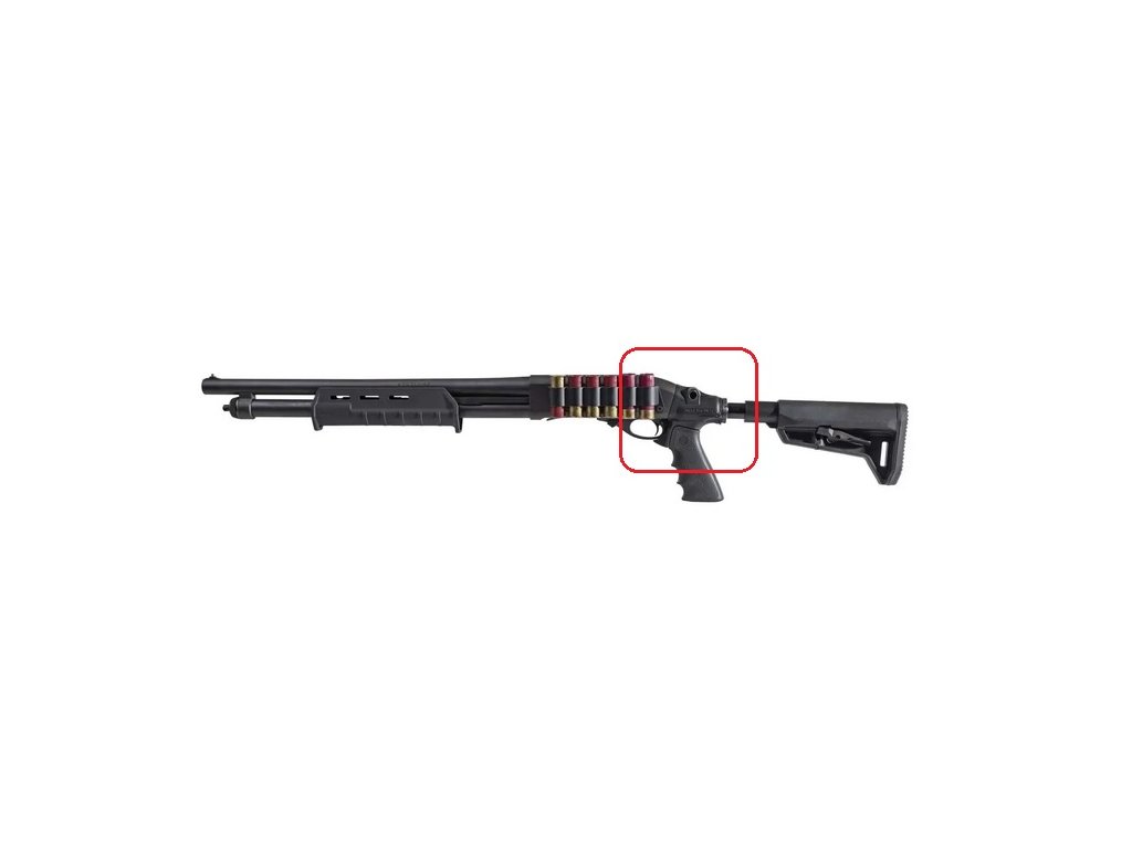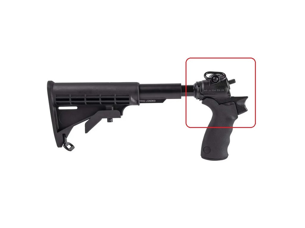 Pri systémoch teleskopickej pažby od spoločnosti Mesa Tactical sa továrenská pažba brokovnice nahradí adaptérom z investičného hliníkového odliatku, na ktorý možno spoľahlivo pripevniť štandardné rukoväte AR-15 a teleskopické pažby. Všetky adaptéry pažieb Mesa Tactical obsahujú viacero spôsobov upevnenia na záves.