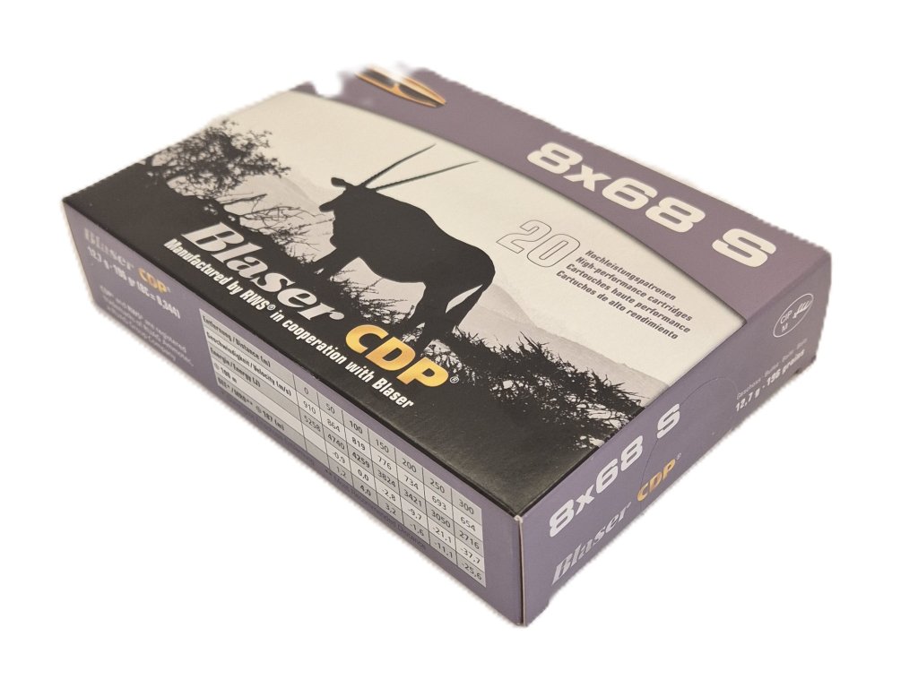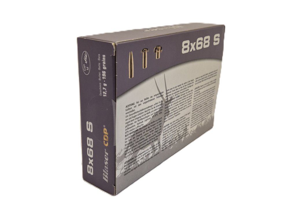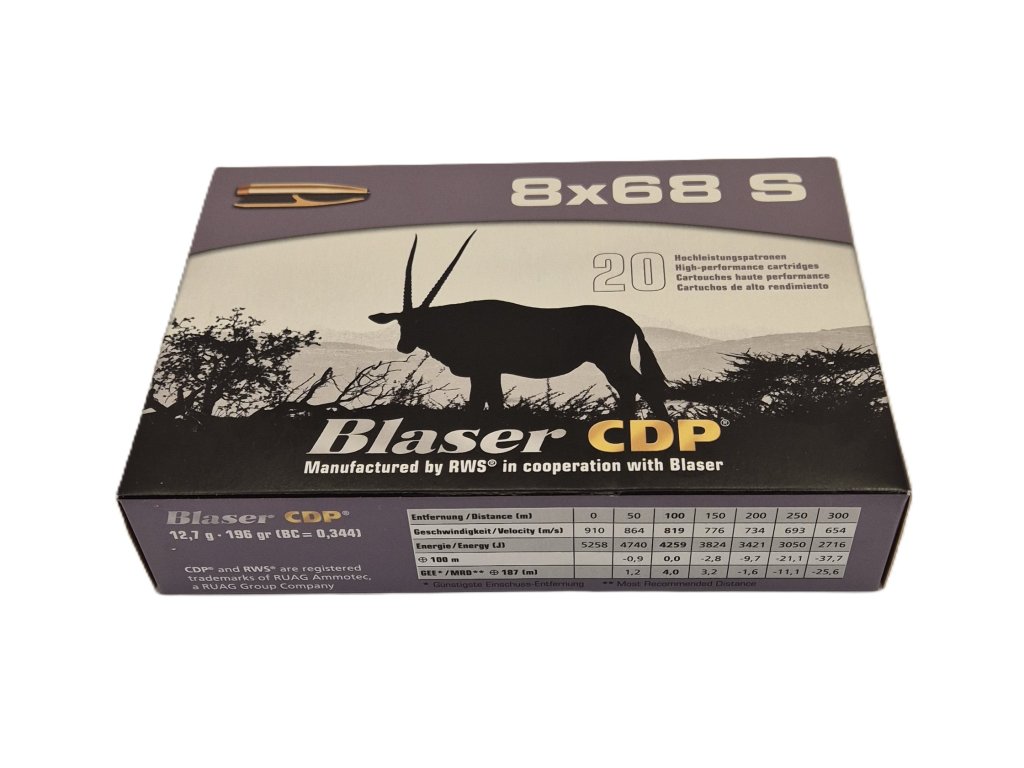 Strelivo Blaser 8x68S CDP s hmotnosťou strely 12,7 g (196 grainov) je ideálne pre lov stredne veľkej až veľkej zveri. Strela CDP (Controlled Deformation Process) je navrhnutá tak, aby zabezpečila maximálny prenos energie pri náraze, pričom si udržuje vysoké zostatkové hmotnosti. Expanzia strely je presne kontrolovaná, čo umožňuje jej spoľahlivý výkon aj pri náraze na cieľ s rôznou hustotou.