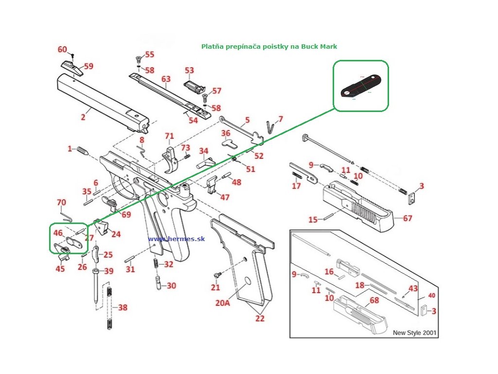 Platňa prepínača poistky pre pištoľ Browning Buck Mark.