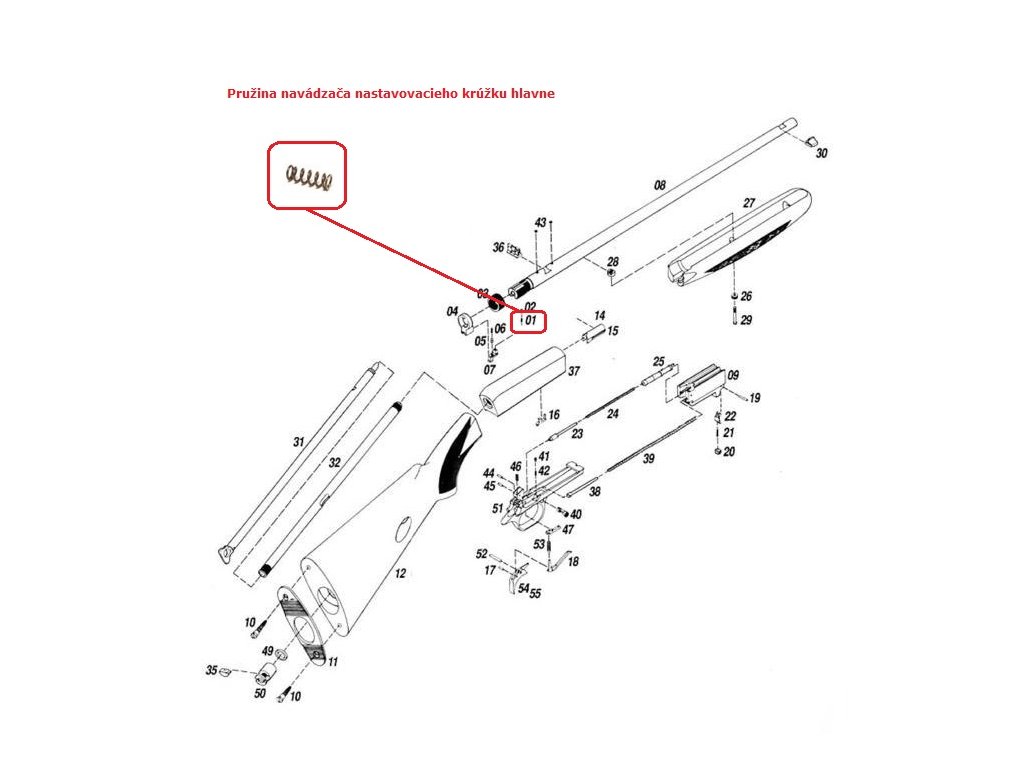 Pružina navádzača nastavovacieho krúžku hlavne pre Browning SA22.
