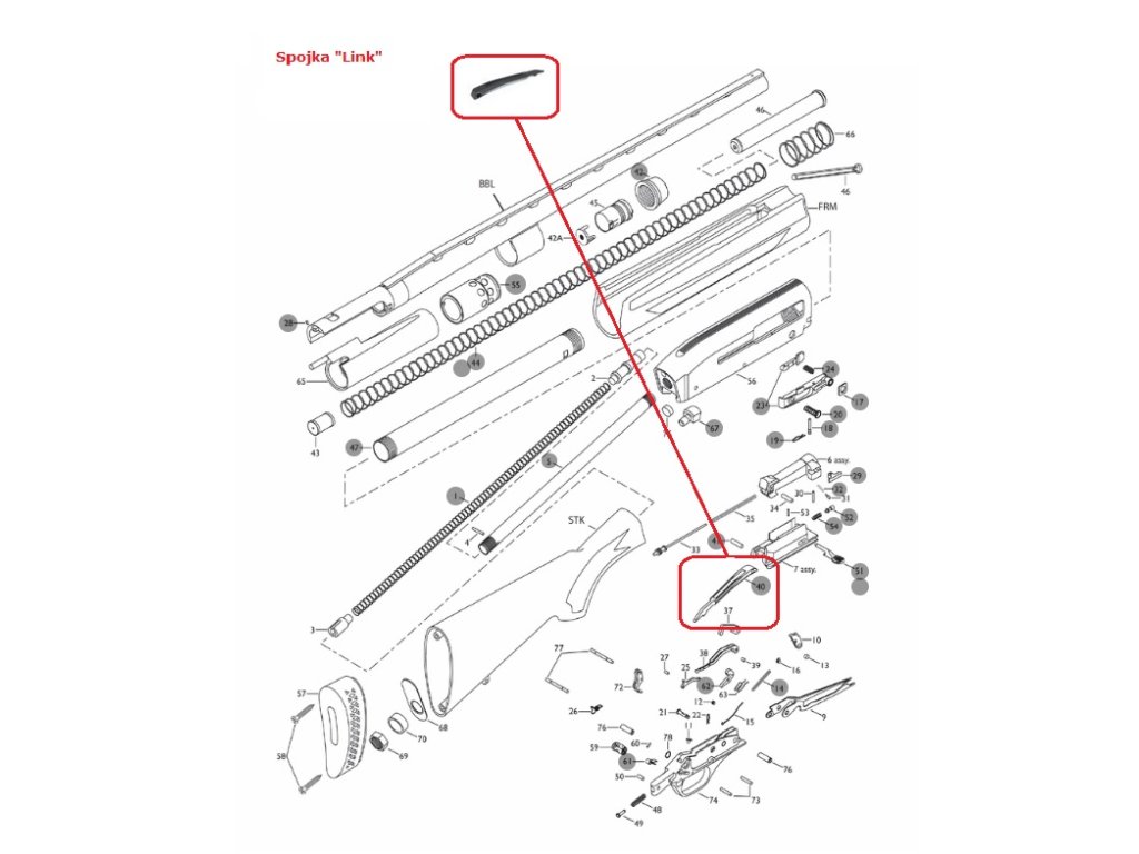 Poznámka: Odporúča sa, aby všetky diely Browning inštaloval kvalifikovaný a vyškolený puškár. Náhradné diely z výroby sa vyrábajú podľa presne rovnakých špecifikácií a tolerancií a používajú sa rovnaké výrobné materiály ako originálne diely.