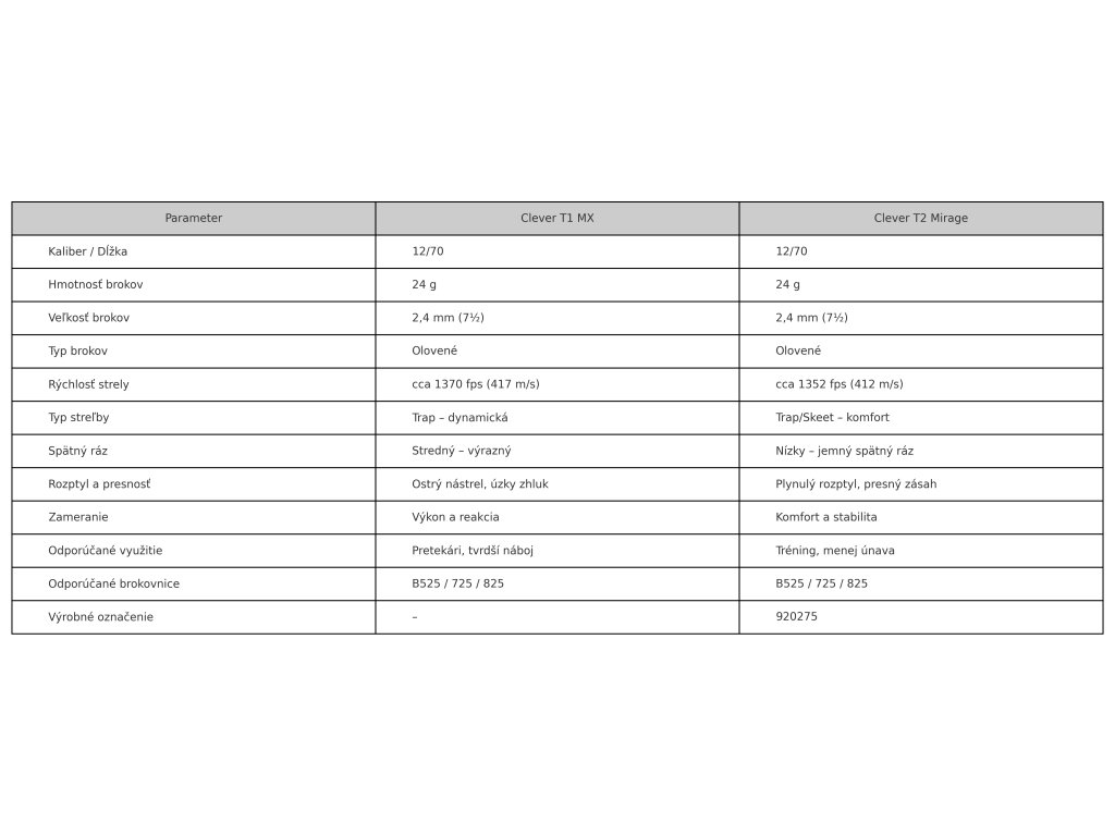 🟩 Porovnanie streliva Clever T1 MX vs T2 Competition Mirage (12/70)