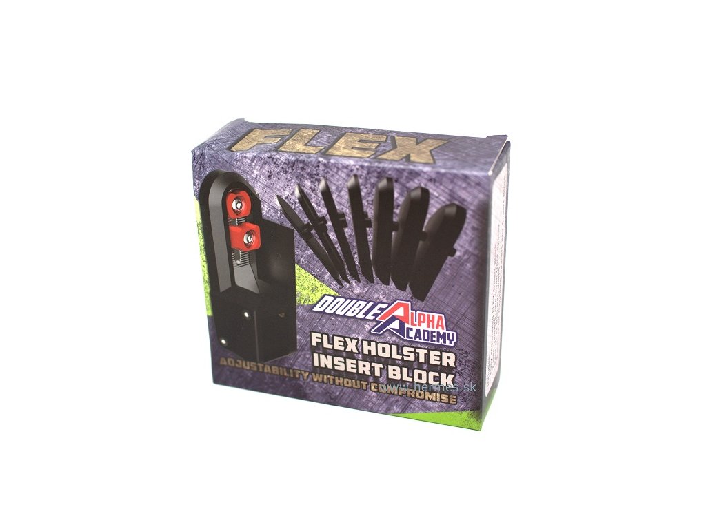 Zostava bloku vložky Flex je vybavená hliníkovým závesným blokom osadeným používateľsky nastaviteľnými zubami závesného bloku. Magnetický záber, ako pri najnovšej generácii vložiek Alpha-X. Nová bezpečná úroveň z nehrdzavejúcej ocele je širšia a plochejšia ako tá, ktorá sa nachádza v blokoch Alpha-X, a je namontovaná na pravej strane bloku, na vonkajšej strane puzdra pre všetkých strelcov RH. Vďaka tomu je prístupnejšia a ľahšie sa aktivuje.