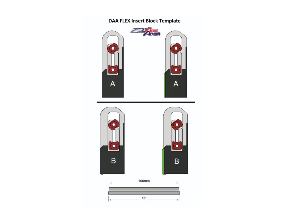 Táto konštrukcia vložky umožňuje každému používateľovi nastaviť a doladiť vložkový blok tak, aby dokonale vyhovoval jeho konkrétnej pištoli. Nielenže nám to umožňuje podporovať takmer všetky typy pištolí len s dvoma modelmi vložiek (typ A a typ B), ale umožňuje to používateľom prispôsobiť sa malým odchýlkam, ktoré často zavádzajú výrobcovia pištolí, ktorí nepovažujú vonkajšie rozmery krytu spúšte za rozhodujúce. V prípade vložiek Alpha-X to bol vždy problém a tento problém je teraz vyriešený novým dizajnom vložky Flex.