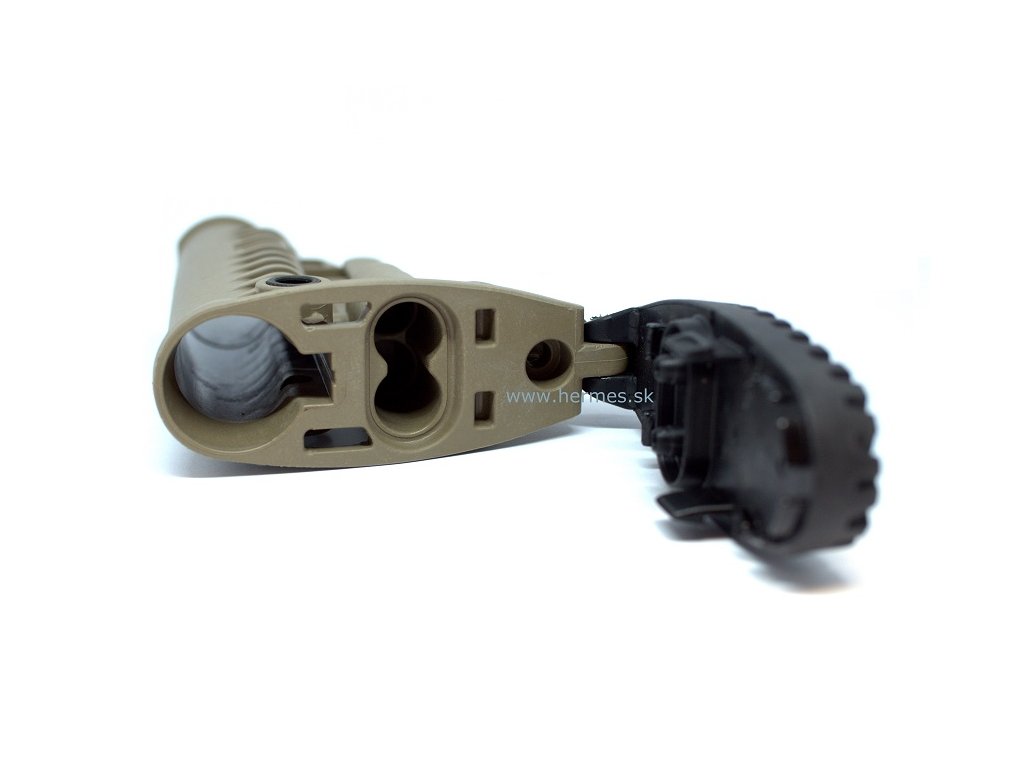 - Super robustný dizajn, 8 otvorov v polohách pre najlepšie prispôsobenie pažby vášmu individuálnemu bojovému úchopu.