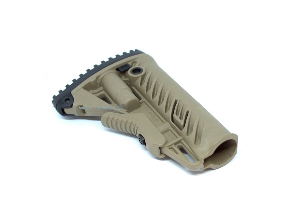 Teleskopický systém je zakončený skvelou pažbou GLR-16. Pažba je určená pre SA vz. 58 a jeho civilné klony a pripevňuje sa k zbrani veľmi ľahko. Na výrobu plastových častí sa používa vysoko odolný polymér plnený sklenenými vláknami, vďaka čomu je zaručená vysoká životnosť. Polymérová pažba GLR 16 má niekoľko konštrukčných prvkov, ktoré určite oceníte. Koniec pažby je osadený gumovou protišmykovou pätkou, ktorá sa čiastočne podieľa na tlmení spätného rázu.