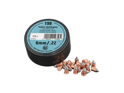 RWS Flobert Spitzkugel - kaliber 6mm, predajné balenie po 150 kusov. Iba osobný odber v predajni po predložení Preukazu zbrane. Nezasielame.