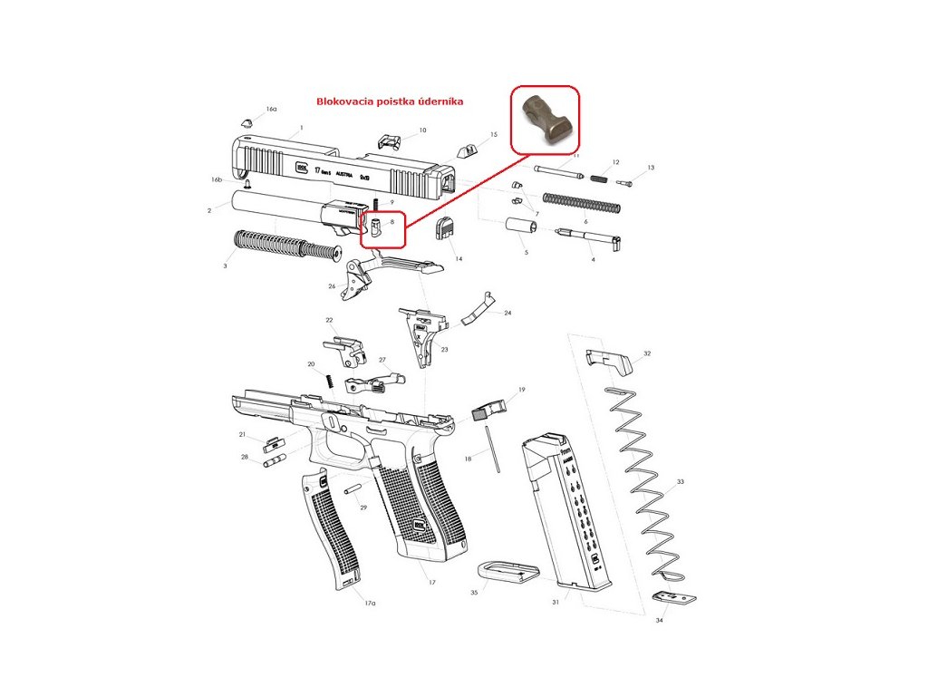 - Blokovacia poistka úderníka pre pištole Glock Gen5 / a Glock 19X.