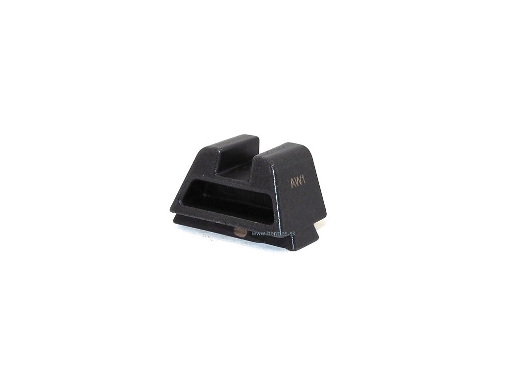 Oceľová muška Glock GMS čierna bez bodu s výškou 9,9mm. Obrázok rozkresu je ilustračný, slúži pre zobrazenie kde v zbrani sa daná súčiastka nachádza.