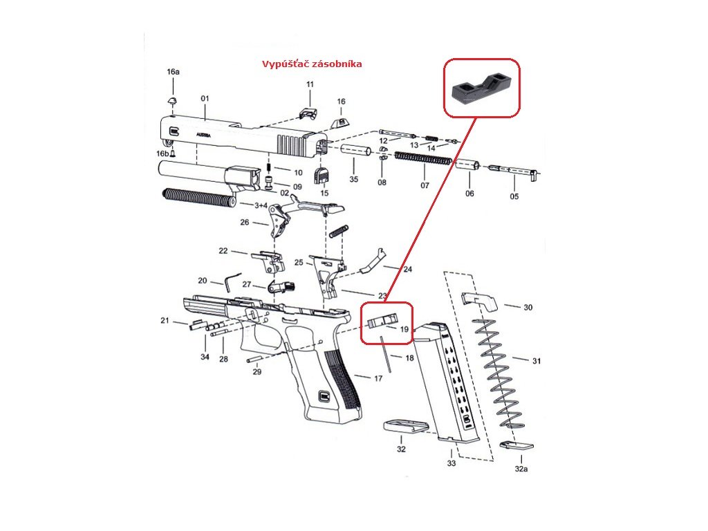 - Obojstranný vypúšťač zásobníka pre pištole Glock 9mm/.40/.380/.35 MB s obojstranným vypúšťaním zásobníka.