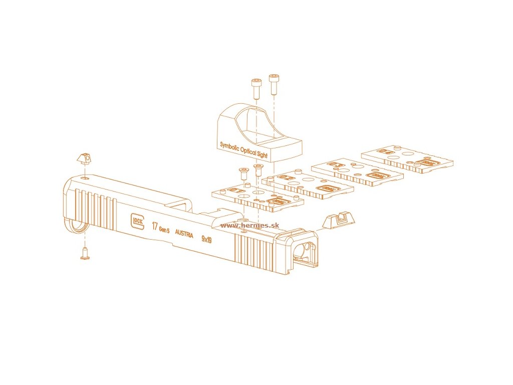 Oceľový adaptér No.4 pre uchytenie kolimátora Leupold, Eotech na pištoľ Glock 17 MOS.