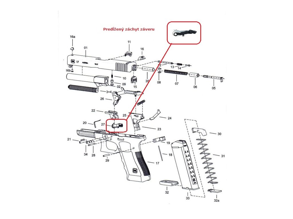 Obrázok rozkresu je ilustračný, slúži pre zobrazenie kde v zbrani sa daná súčiastka nachádza.