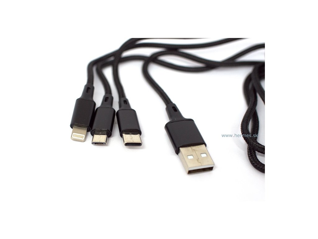 Napájací kábel pre fotopasce 3v1 kábel pre nabíjanie zariadení s USB-C, Lightning a microUSB z USB k externému zdroju 12V.