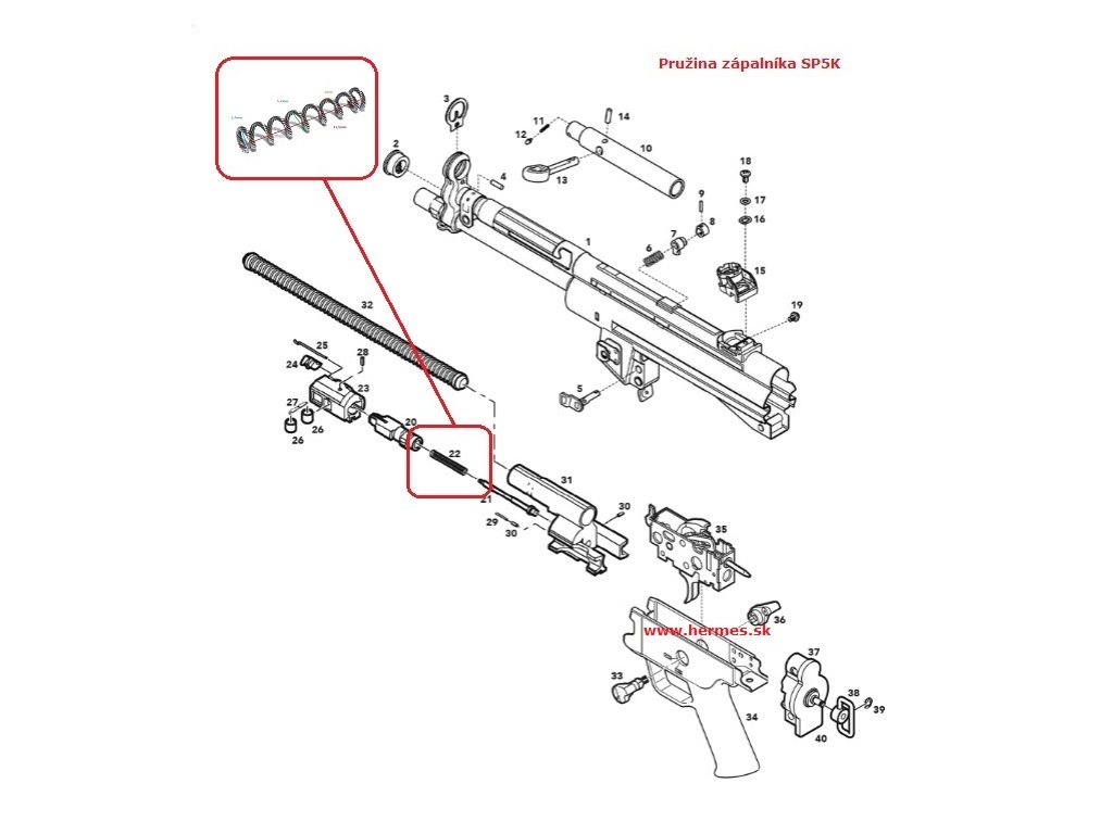 - Pružina zápalníka pre Heckler & Koch SP5K / SP5 / SP5L.