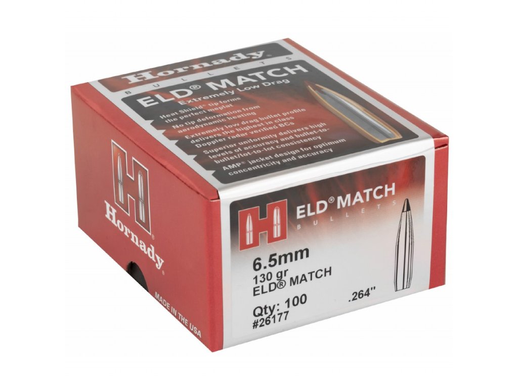 Strely Hornady .264 / 6,5mm ELD Match, hmotnosť strely 8,4./130gr., Predajné balenia po 100 kusov.
