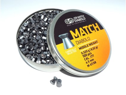 JSB - Match Diabolo s plochou hlavičkou pre vzduchové pištole kal.4,5mm/.177, hmotnosť 0,500g. Balenie po 500ks. Voľne predajné osobám starším ako 18 rokov. Svojou záväznou...