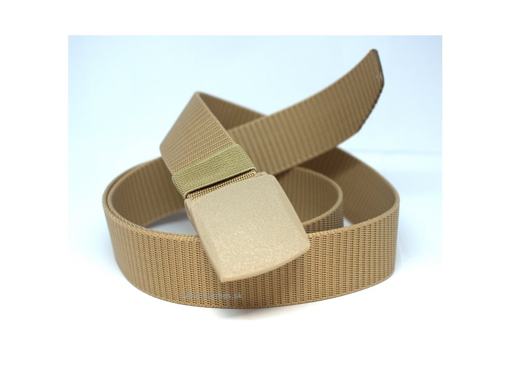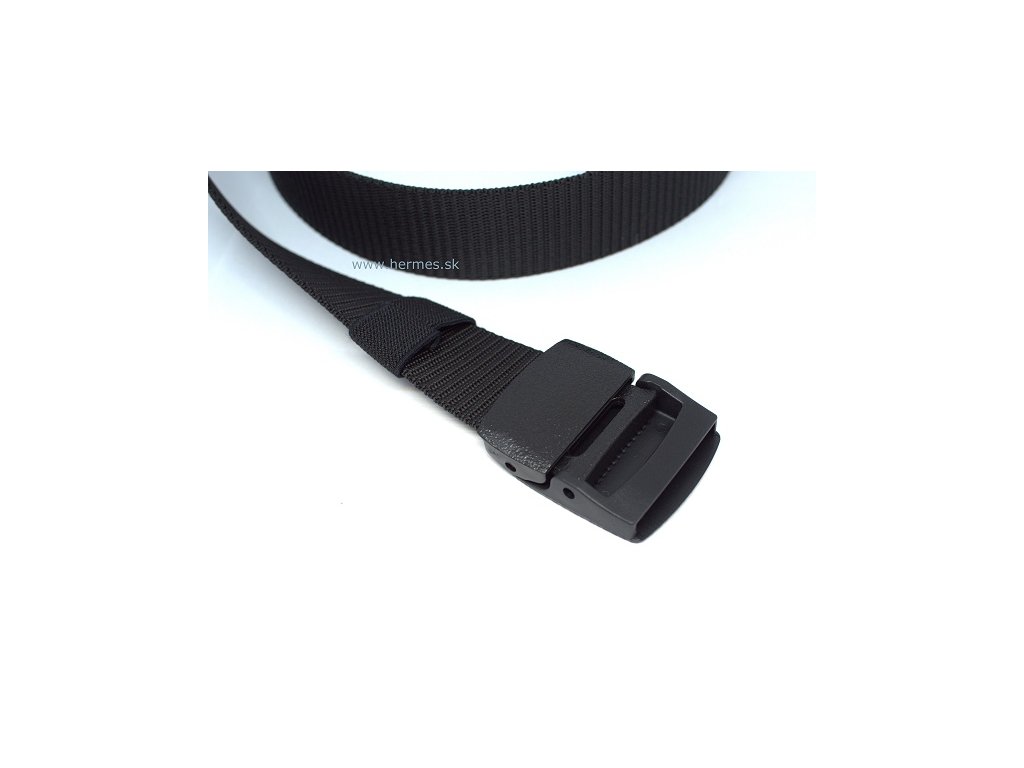 Jednoduchý nylonový opasok s plastovou sponou. Opasok je mäkký, poddajný, ľahký a univerzálnej veľkosti. Súčasťou opasku je pútko z elastickej gumy na prichytenie konca opasku.