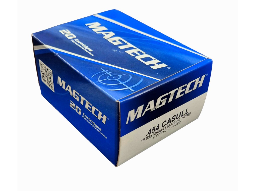 Doprajte si výkon a presnosť s jedným z najsilnejších revolverových kalibrov na trhu. Náboje Magtech 454B sú ideálnou voľbou pre strelcov, ktorí vyžadujú konzistentné výsledky pri tréningu, športovej streľbe na terč alebo pri nastreľovaní zbrane. Celoplášťová strela s plochým hrotom (FMJ Flat) zaručuje hladké podávanie a vynikajúcu stabilitu počas letu.