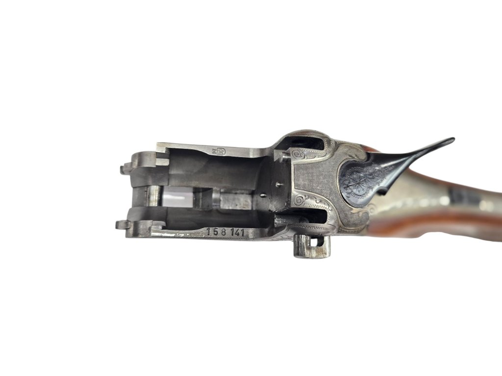 Zbraň je v pôvodnom stave bez dodatočných úprav – neprebehlo žiadne dodatočné černenie hlavní ani opravy dreva. Stav hlavní je veľmi pekný: vnútro je zrkadlové, bez poškodenia, čo je pri použitej brokovnici najdôležitejšie. Mechanika je zdravá a podstatné plus: uzamykanie je pevné a bez vôle.