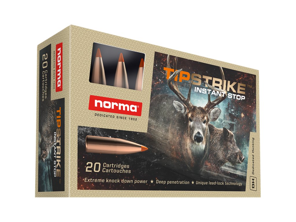 TipStrike je navrhnutá tak, aby zastavila zviera na mieste, a ponúka masívny účinok na krátke až štandardné vzdialenosti. TipStrike je skonštruovaná s tenkým plášťom a aerodynamickou polymérovou špičkou, ktorá zaisťuje rýchlu expanziu pri náraze. Rýchlo expandujúce, agresívne strely však vždy riskujú, že uvoľnia svoju energiu príliš skoro v dôsledku hrubej kože, kostí alebo iných tvrdých prekážok.