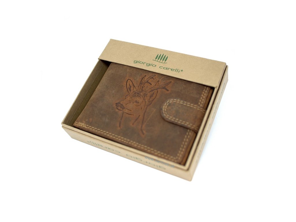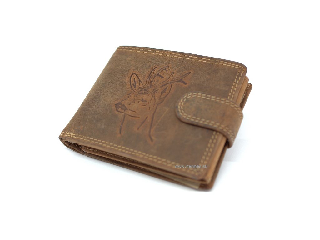 Peňaženka - koža, horizontálna + zapínanie /hlava srnca/ hnedá, RFID