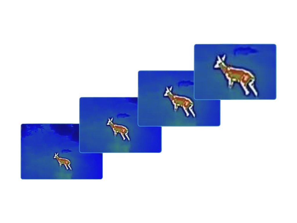 Pomocou digitálneho zoomu 1x, 2x, 4x, alebo 8x môžete obraz jednoducho priblížiť a cieľ identifikovať.