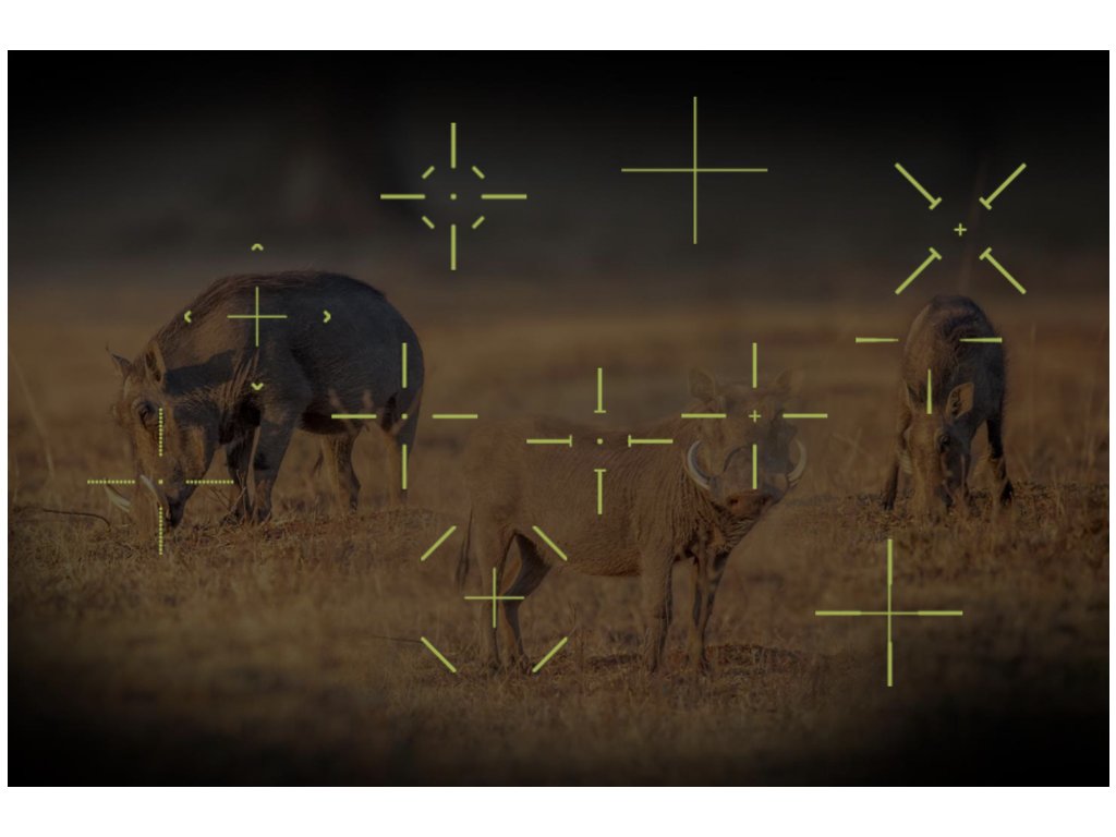 Vyberte si z ponuky 11-tich tvarov zameriavacích krížov pre splnenie vašich preferencií pri sledovaní a 3-och farebných prevedení, ktoré pomáhajú optimalizovať zameranie v špecifických podmienkach