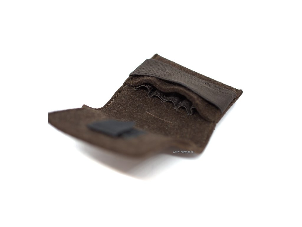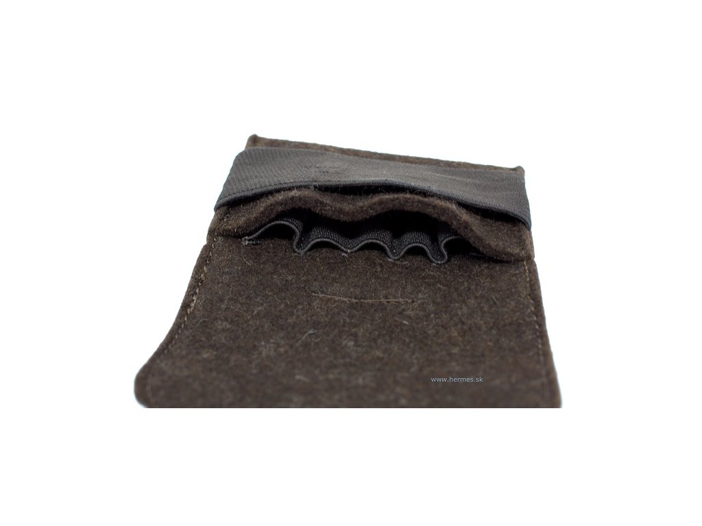 Malé, bezhlučné puzdro vyrobené z filcu na 5 guľových nábojov do kalibru .30Win. Náboje sú v puzdre uchytené gumou. Puzdro má na zadnej strane pútko na nosenie na opasku. Šírka opasku cca 4 cm.