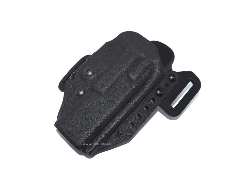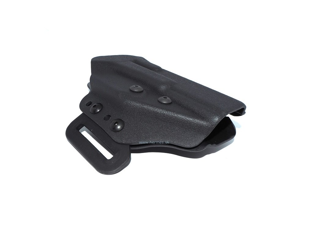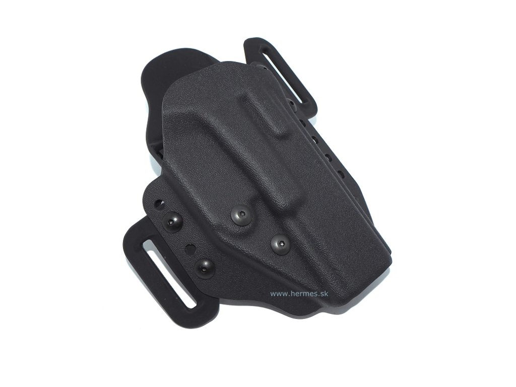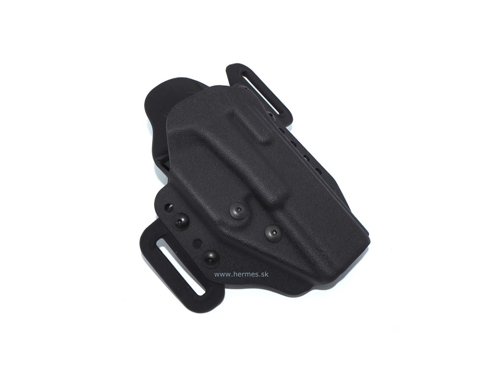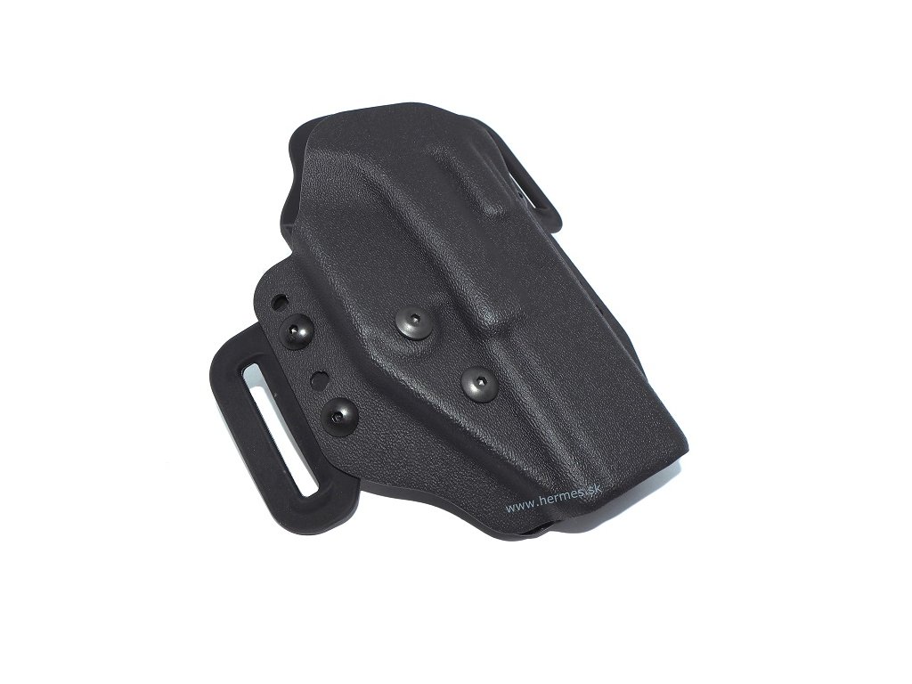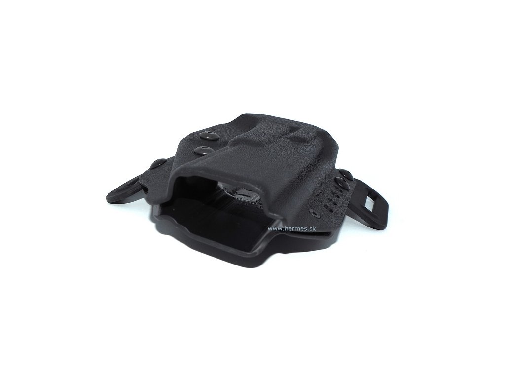 Puzdro zo vstrekovaného polyméru na skryté nosenie, ktoré je vyvinuté s inovatívnou gumovou slučkou, ktorá umožňuje prispôsobiť výšku a uhol nosenia pomocou 2 skrutiek.
