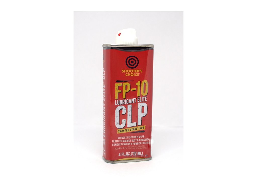 FP-10 od Shooter’s Choice je prémiový CLP produkt určený na čistenie, mazanie a ochranu zbraní a pohyblivých častí. Obsahuje špeciálne aditívum MT-10, ktoré zvyšuje mazivosť medzi kovovými plochami bez vytvárania usadenín alebo zmeny vôľ. Výrobca uvádza, že FP-10 prekonáva Teflon®-based prípravky v trvanlivosti mazania a znižovaní trenia, pričom výrazne znižuje riziko porúch pohyblivých mechanizmov.