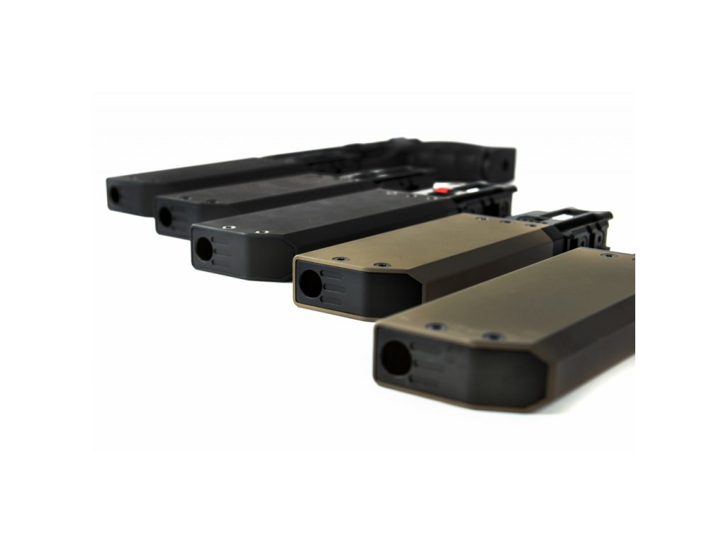 | Povrchová úprava | Tvrdý elox, čiernený a cerakoteovaný |