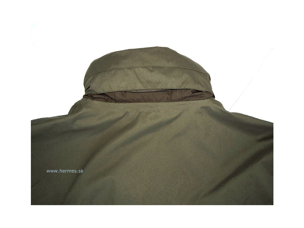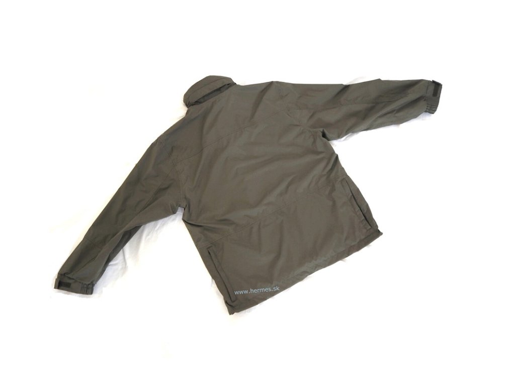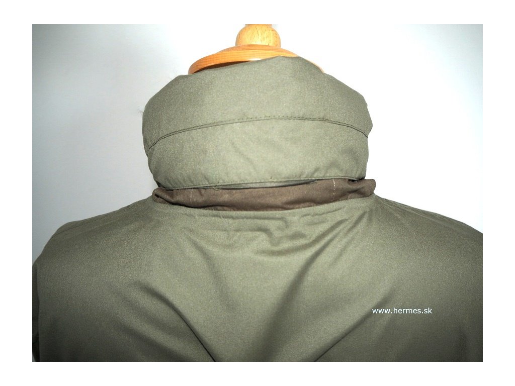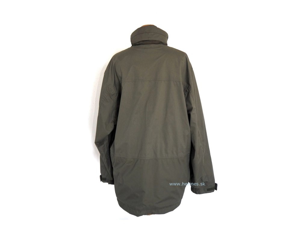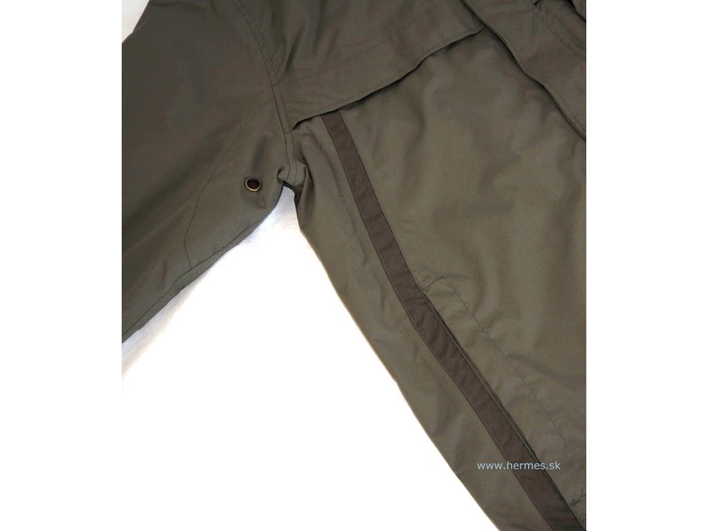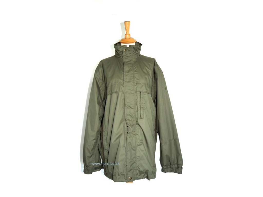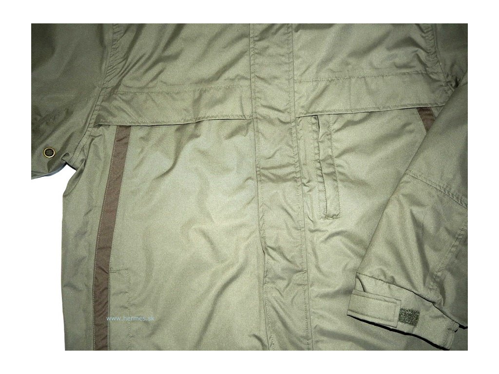 Pánska letná bunda s kapucňou skrytou v límci, tri vonkajšie vrecká so zapínaním na zips chrbtové vrecko v krížovej časti, dve vnútorné vrecká, vetranie pod pazuchou, sťahovacia gumička v spodnej časti bundy. Bunda je podšitá sieťovinou.