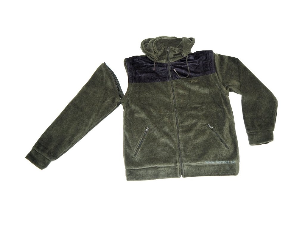 Pánska fleece mikina so zapínaním na zips, odnímateľnou kapucňou, odnímateľné rukávy, lesklá podšívka.