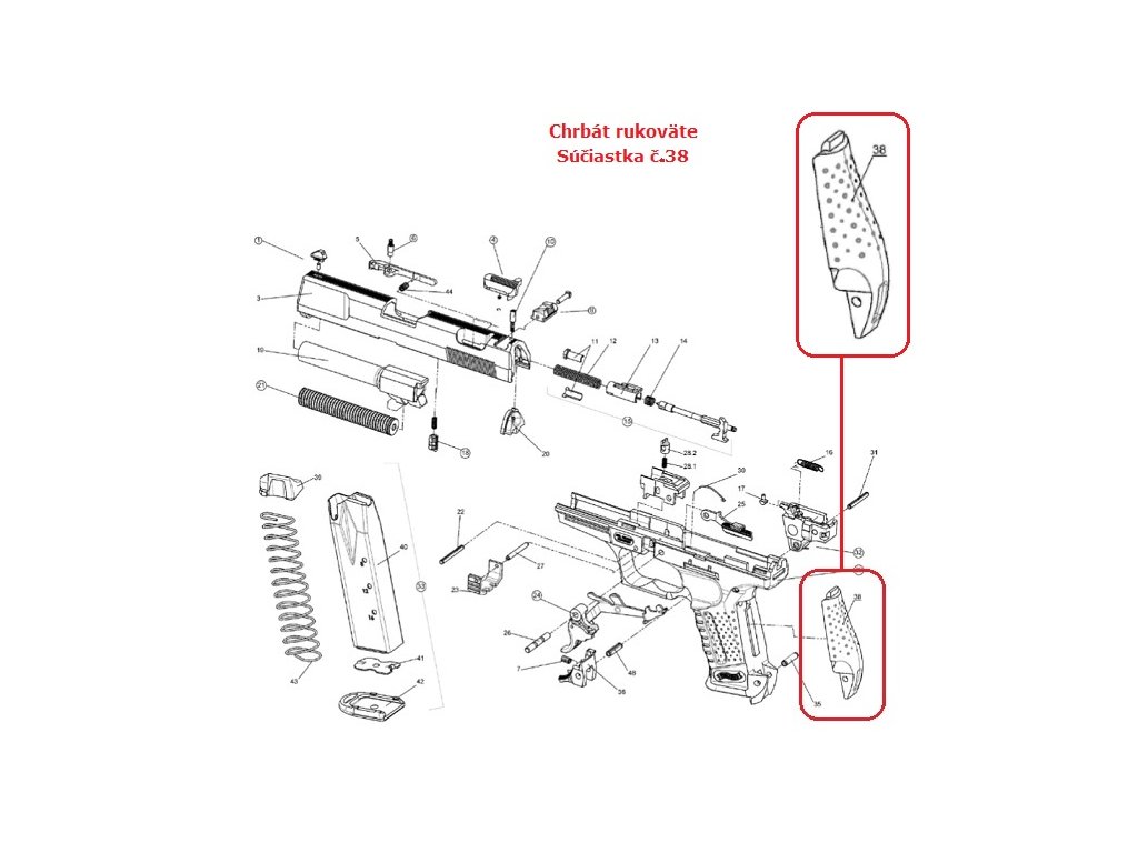 Výmenný chrbát rukoväte pre pištoľ Walther P99 Full size, vyrobené od roku 2004. Do roku 2004 mal chrbát a rukoväť inú textúru.