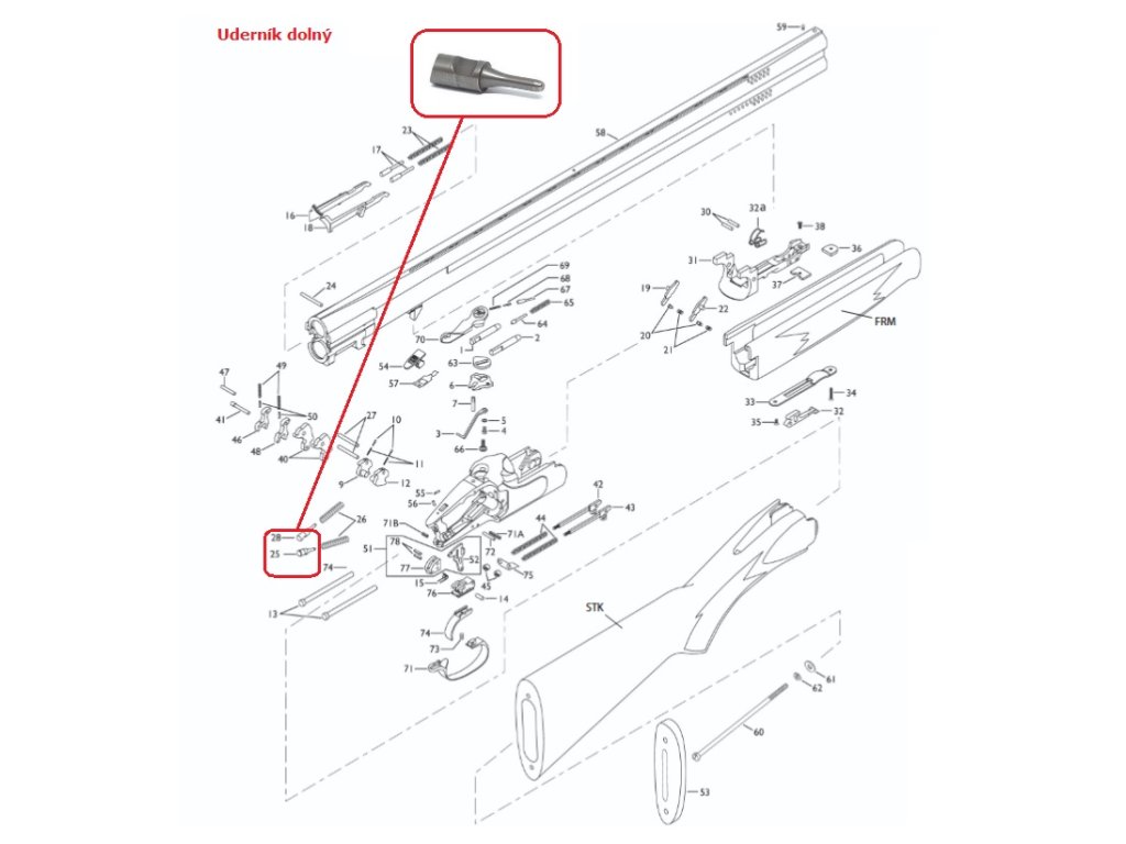 Dolný úderník, vyrobený podľa vysokých štandardov spoločnosti Winchester v oblasti kvality a remeselného spracovania, je určený pre brokovnicu Winchester Select Supreme Over Under. Úderník je zodpovedný za zasiahnutie zápalky nabitého náboja umiestneného v spodnej hlavni.